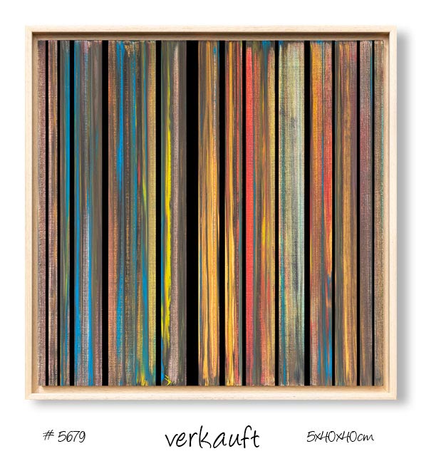 Wohlüberlegt und in verschiedenen Breiten angelegt, überlagern sie die farbige Fläche und geben dem Bild somit Halt und Tiefe.